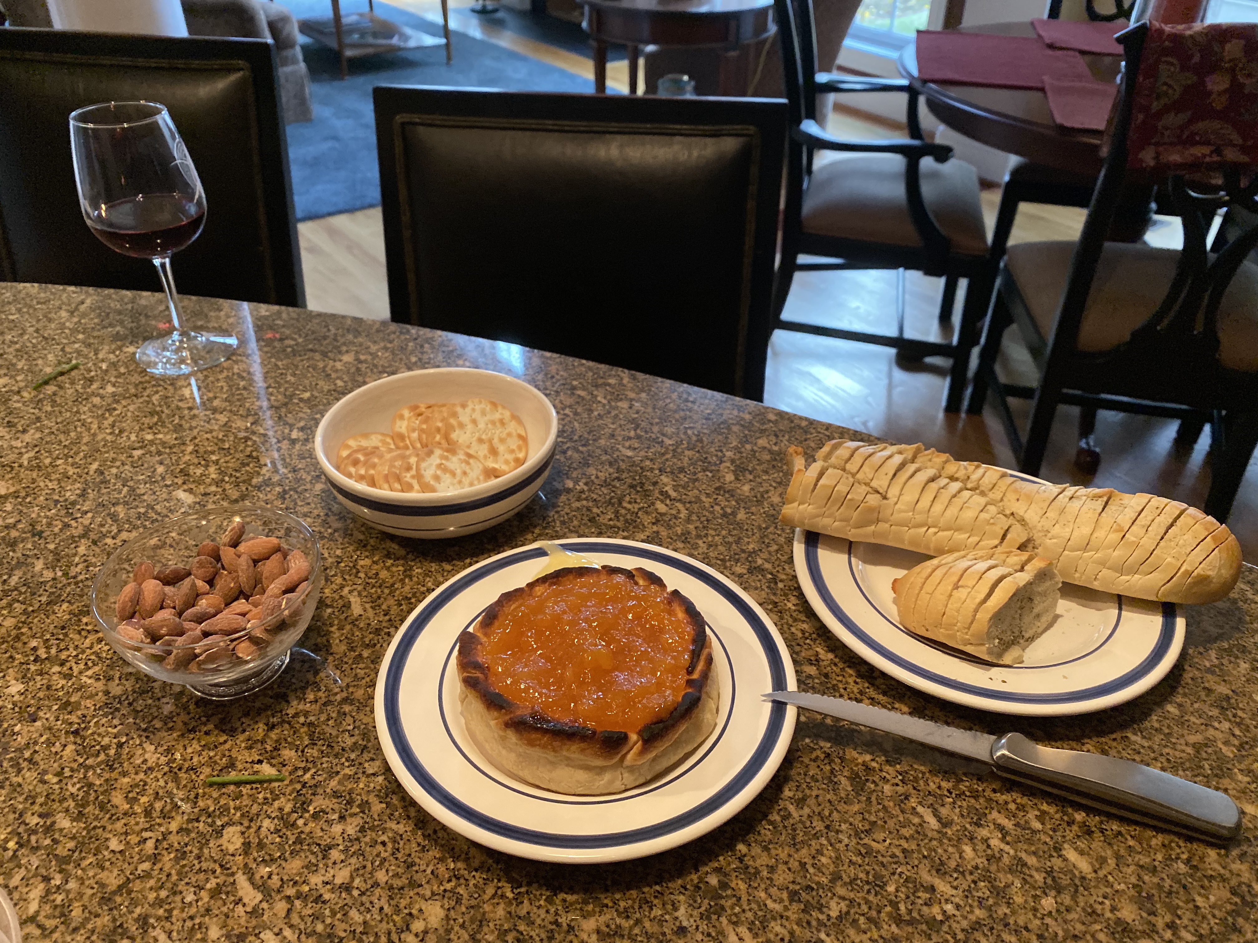 Wheel of Camembert Pie crust (I use Pillsbury's pre-made that comes 2 in a box in the refrigerated section) Apricot pie filling (Can be hard to find, would sub cherry pie filling rather than trying more sugary preserve/jam options)