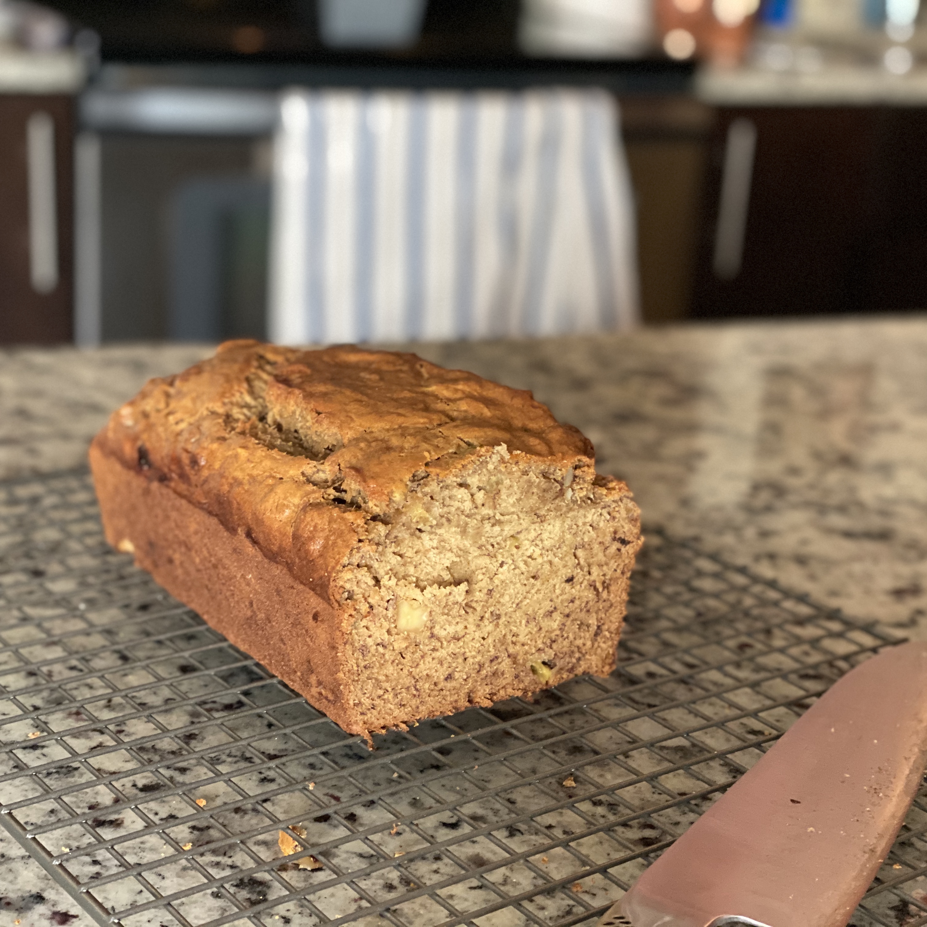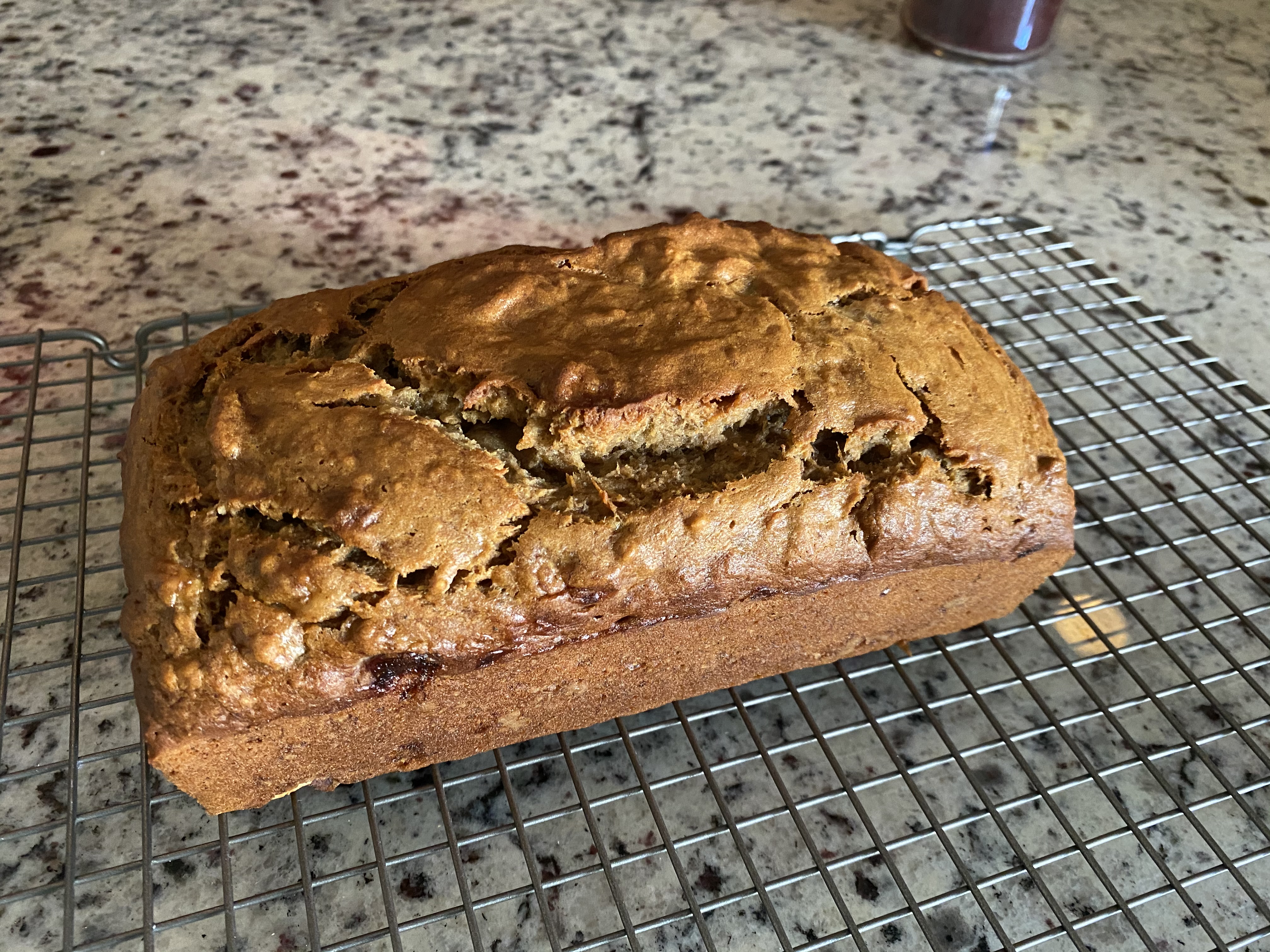 3 to 4 ripe bananas, smashed 1/3 cup (75 grams) melted salted butter 3/4 to 1 cup (145 to 190 grams) light brown sugar (depending on the level of sweetness you prefer) 1 egg, beaten 1 teaspoon (5 ml) vanilla 1 tablespoon (15 ml) spiced rum (optional) 1 teaspoon (5 grams) baking soda Pinch of salt 1.5 teaspoon (4 grams) cinnamon Up to 1/2 teaspoon (1) nutmeg Pinch of ground cloves 1 1/2 cups (190 grams) flour Optional: walnuts and/or chocolate chips